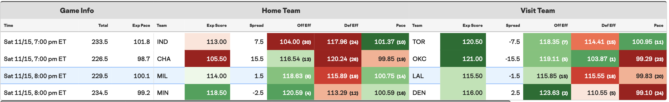 We're well-represented for most of the eight teams available tonight, although some key players from the Thunder and Lakers were excluded from consideration. Recent injury issues for Denver offered us a lot of value, and the Pacers continue to provide us with pivots that are worth considering.