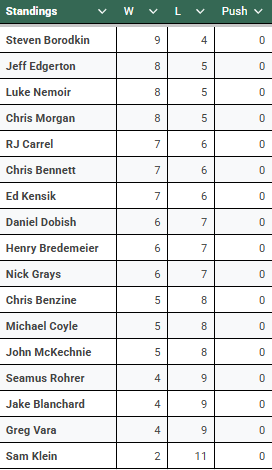 Before we get into this season, here's a look at how our staff of writers fared last season against the spread if you had bet each game at the time we picked, for those interested in following certain picks.
