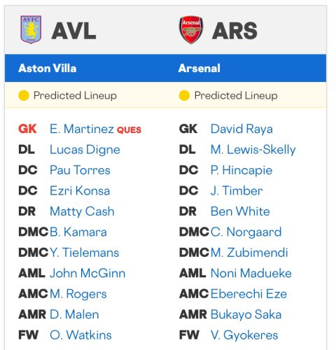 In Villa's midweek victory, Digne played just 20 minutes behind the starter Maatsen, perhaps with an eye on keeping the veteran fresh for a matchup with Saka. However, Emery could prefer the pace and agility of Maatsen over Digne in an effort to contain Saka.